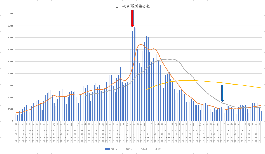 ゴールデンクロスなら買いですね。。。株だったらだけど。。ま。いずれにせよ徐々にまた増えていくとは思います。感染力の強いとされる変異型が出てきたとなればなおの事。ワクチン接種が先か変異型コロナ感染拡大が先かといった戦いかもしれません。