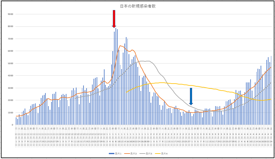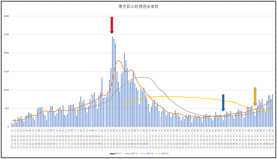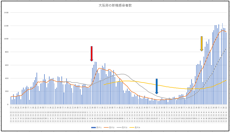 2021/04/25 - りす栗さんの株式ブログ。タイトル:「4月24日(土)感染データ」 本文:東京都、大阪府、日本全体の各新規感染者グラフ。大阪は高止まりから反落へ?25日から緊急事態宣言下となるが、その他の地域は「まん延防止」でよいのか?