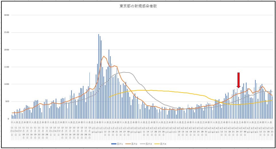 2021/05/21 - りす栗さんの株式ブログ。タイトル:「5月21日(金)感染対策とこれから暑さ対策」 本文:早めに東京都と大阪府の新規感染者数の推移を載せておきます。平均線がデッドクロスした直後にその傾向が継続するか気になるところですが、今のところ大丈夫そうです。オリンピックはするでしょう。これからは暑さ対