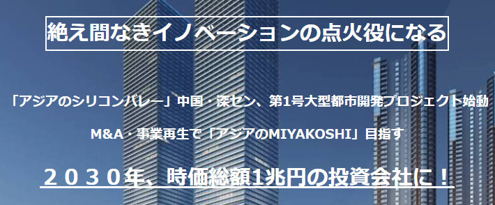 宮越HDは中国の不動産賃貸の会社で、今、結構投資家の中で注目されている銘柄ですので、知っている方も多いかと思いますが「時価総額400億円程度ですが、会社のHPに時価総額1兆円を目指す!」と記載した事で投資家の注目を集めた企業です。