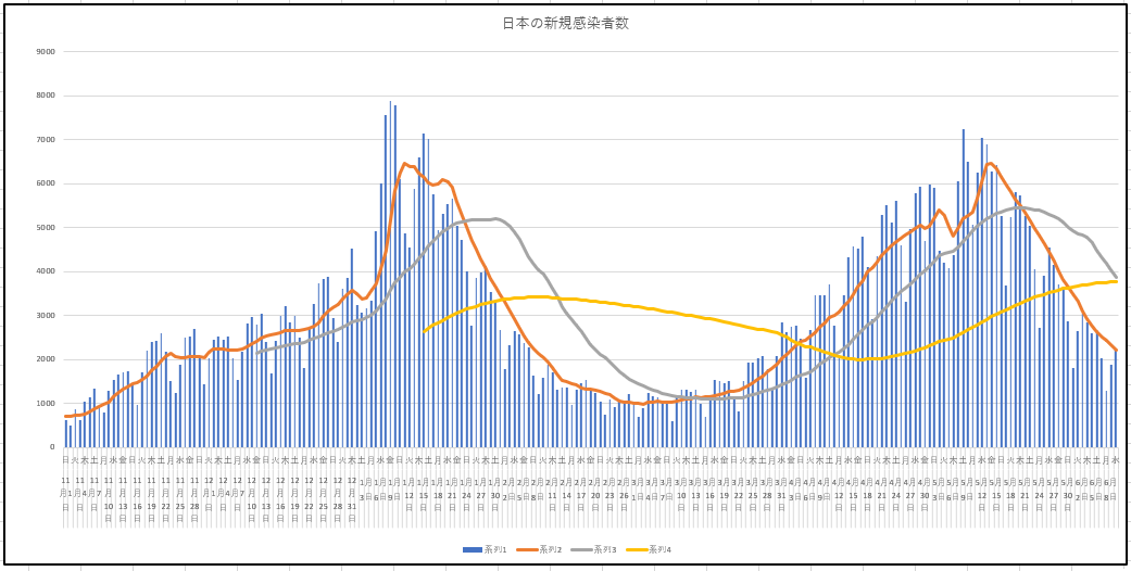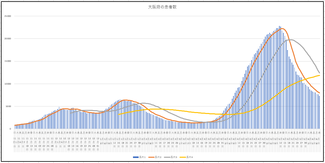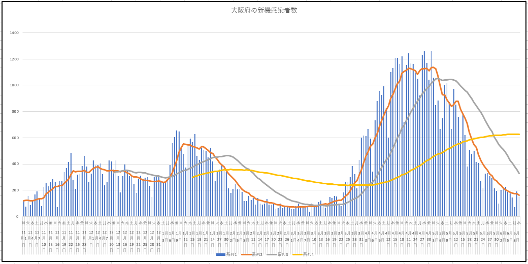 2021/06/09 - りす栗さんの株式ブログ。タイトル:「6月9日(水)おしりの下の地震もね」 本文:東京都と大阪府の新規感染者数の推移。東京都の傾向は、中長期のデッドクロスとして強いトレンドがあると言ってよいかも。28日移動平均線が84日移動平均線をデッドクロスしている。ところで、本日の17時27分