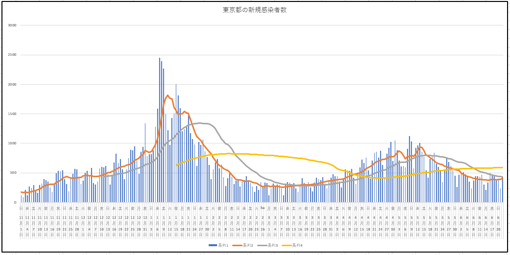 救いは新規も現患者数も28日(4週間)移動平均が今も下がり続けている