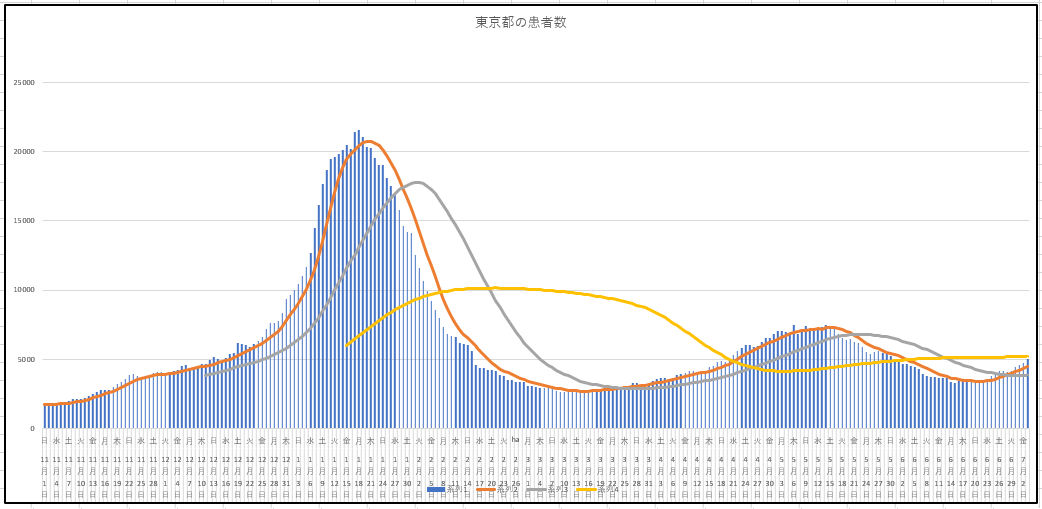 グラフ上の平均線はいつものように、7日、28日、84日の三本です。