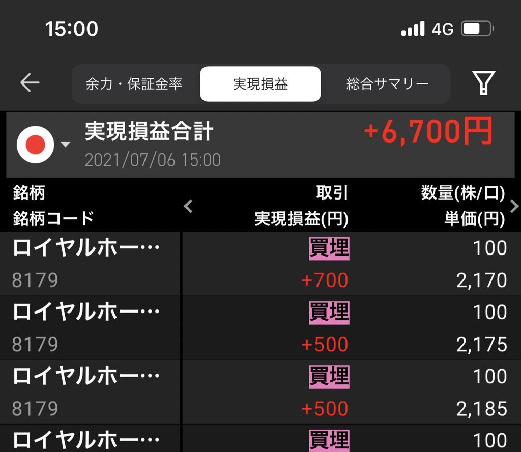 2021/07/06 - さるしゃちょーで検索するブログさんの株式ブログ。タイトル:「空売り、7/06の実現損益は+6700円」 本文:ロイヤルホールディングス(8179)という株を空売り中☺️コロナが落ち着いたら、利益出ると世間で思われていますが、私から見たらゴミクズ銘柄価値のあるものは価値があるし、価値のないものは価値がないバブル