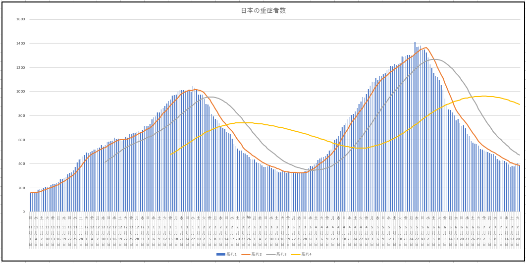 7月21日(水)までの日本全国の新規感染、現存患者数、重症者の