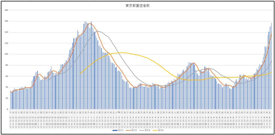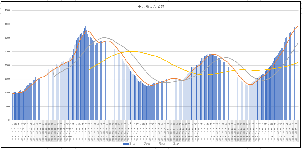 というわけで久しぶりに東京都の新規感染、入院患者数、