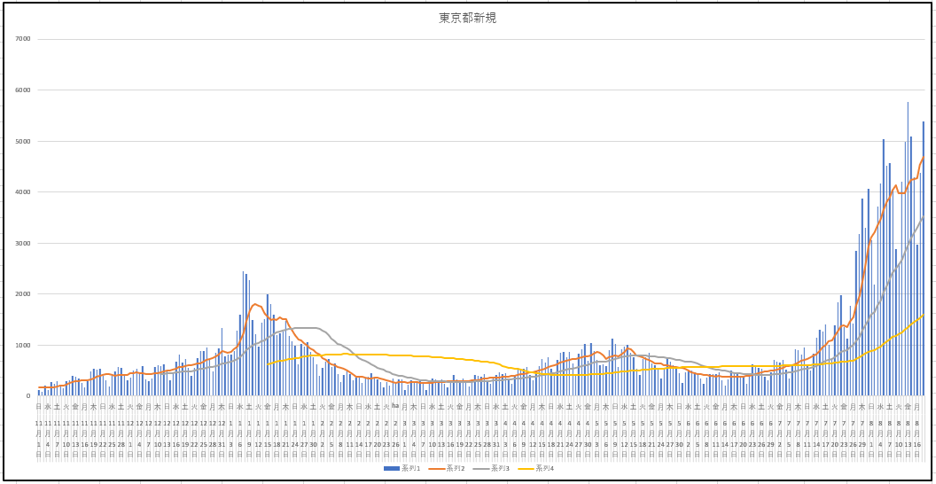 2021/08/18 - りす栗さんの株式ブログ。タイトル:「感染データがそろってないが」 本文:東京都の新規感染の推移グラフのみ。まあ周辺地域も推して知るべしである。それにしても、接近して話す等の接触でうつる、ということが分っているのにもちっとなんとかならんかったかね。普通の風邪やインフルだって