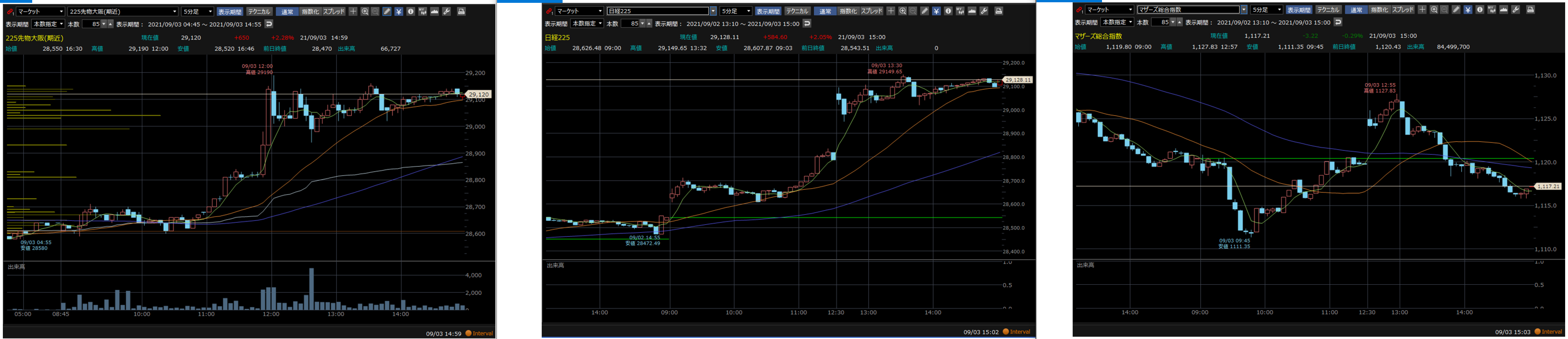 さらに昼休み中に首相が自民党総裁選への出馬を見送るとの報道が入ると後場