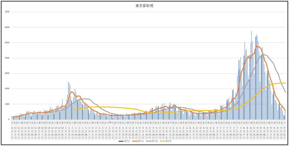 2021/09/23 - りす栗さんの株式ブログ。タイトル:「9月23日(木) シルバーウィーク」 本文:東京都の新規感染は相当少なくなってきて、再度7日平均線と日々の実数が闘い出すころだ。とはいえ今週は飛び石連休などあるので、来週にあらためてじっくり見てみようと思う。今日辺りまた孫が来るかもしれないが、