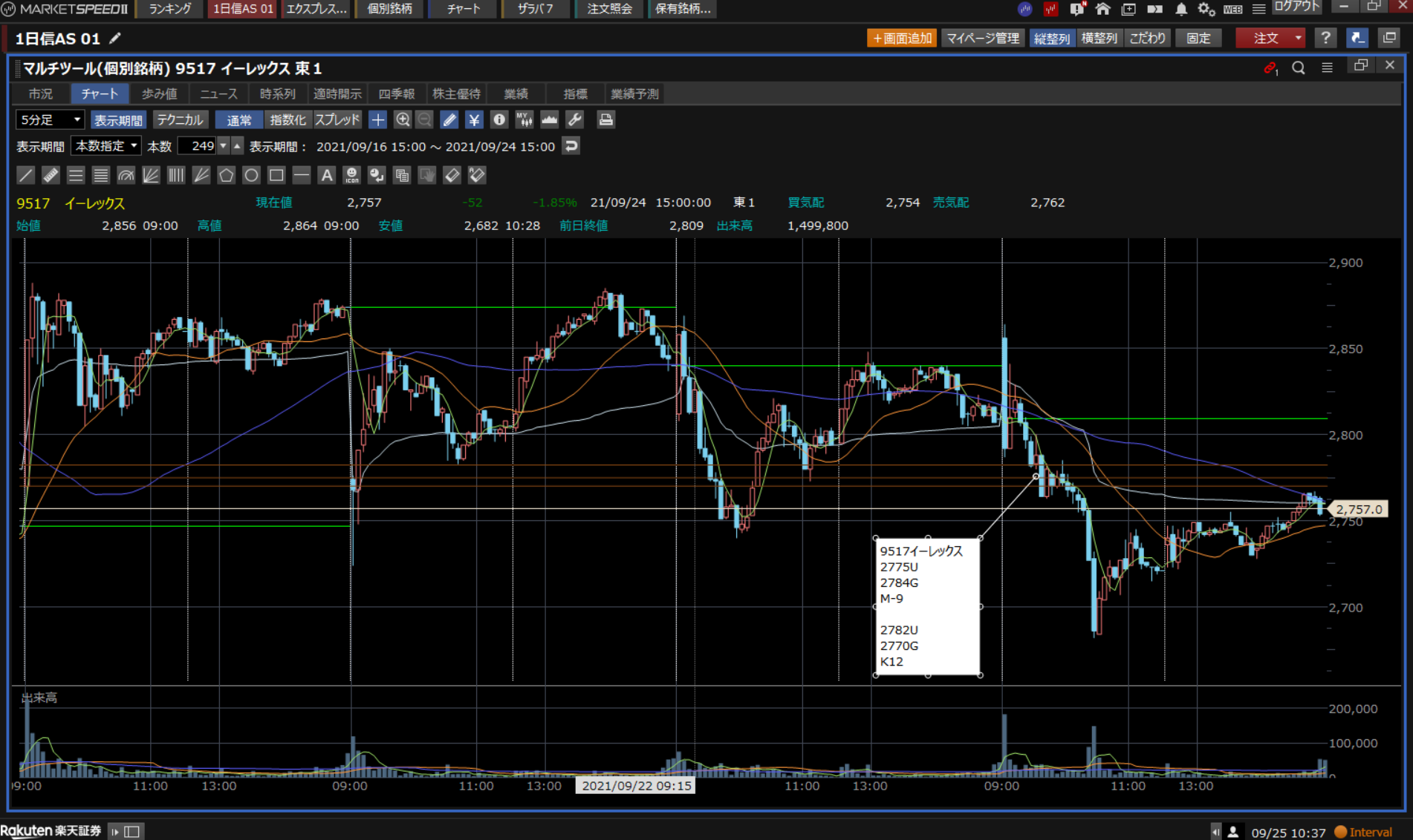 2021/09/25 - 株の素人2021さんの株式ブログ。タイトル:「VT:9517 イーレックス K3 戦略オリ↓ ★」 本文:9517イーレックス2775U2784GM-92782U2770GK12上昇相場の下落は銘柄はオアシス、稼げる