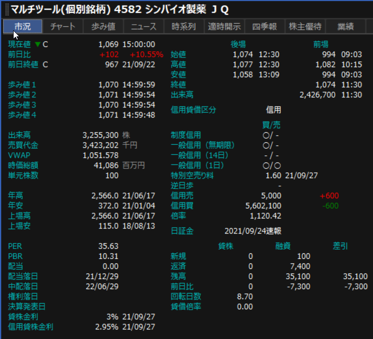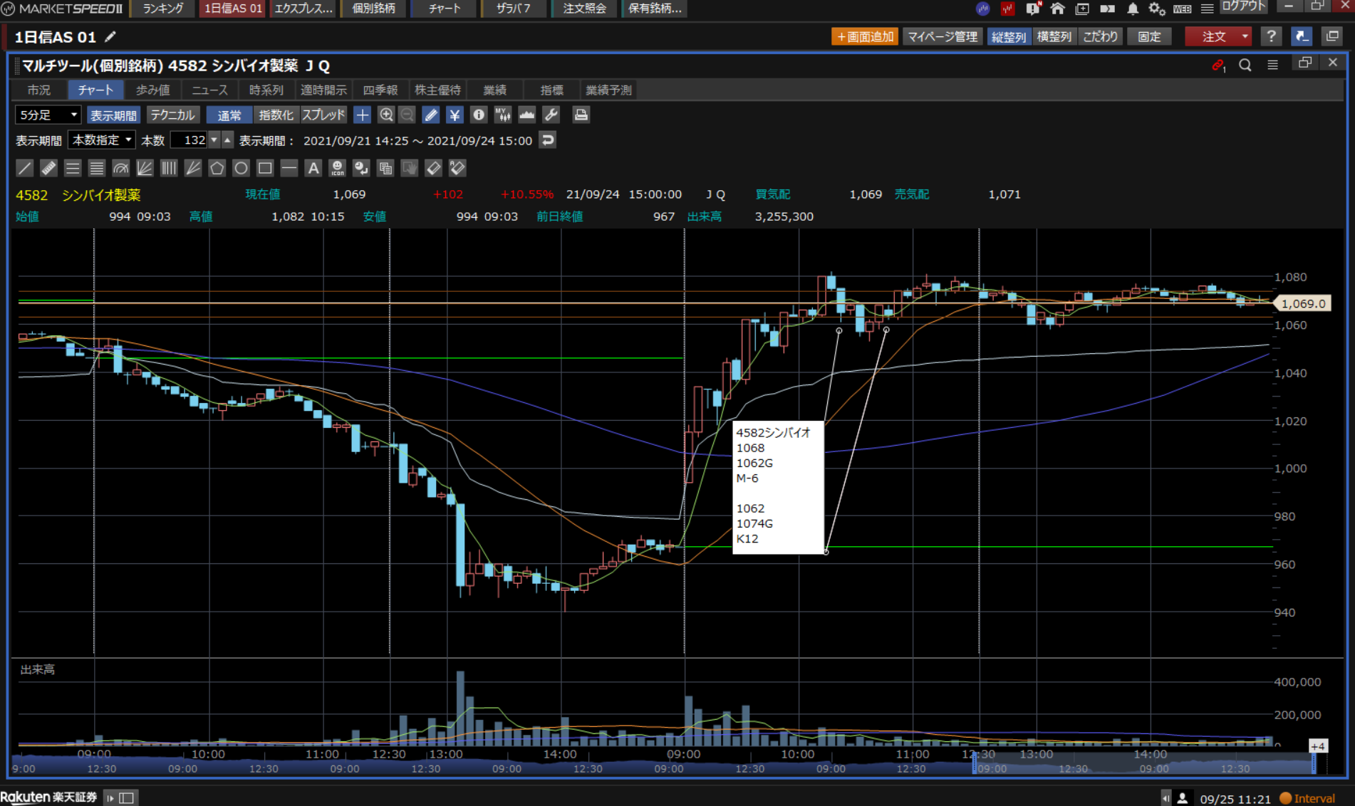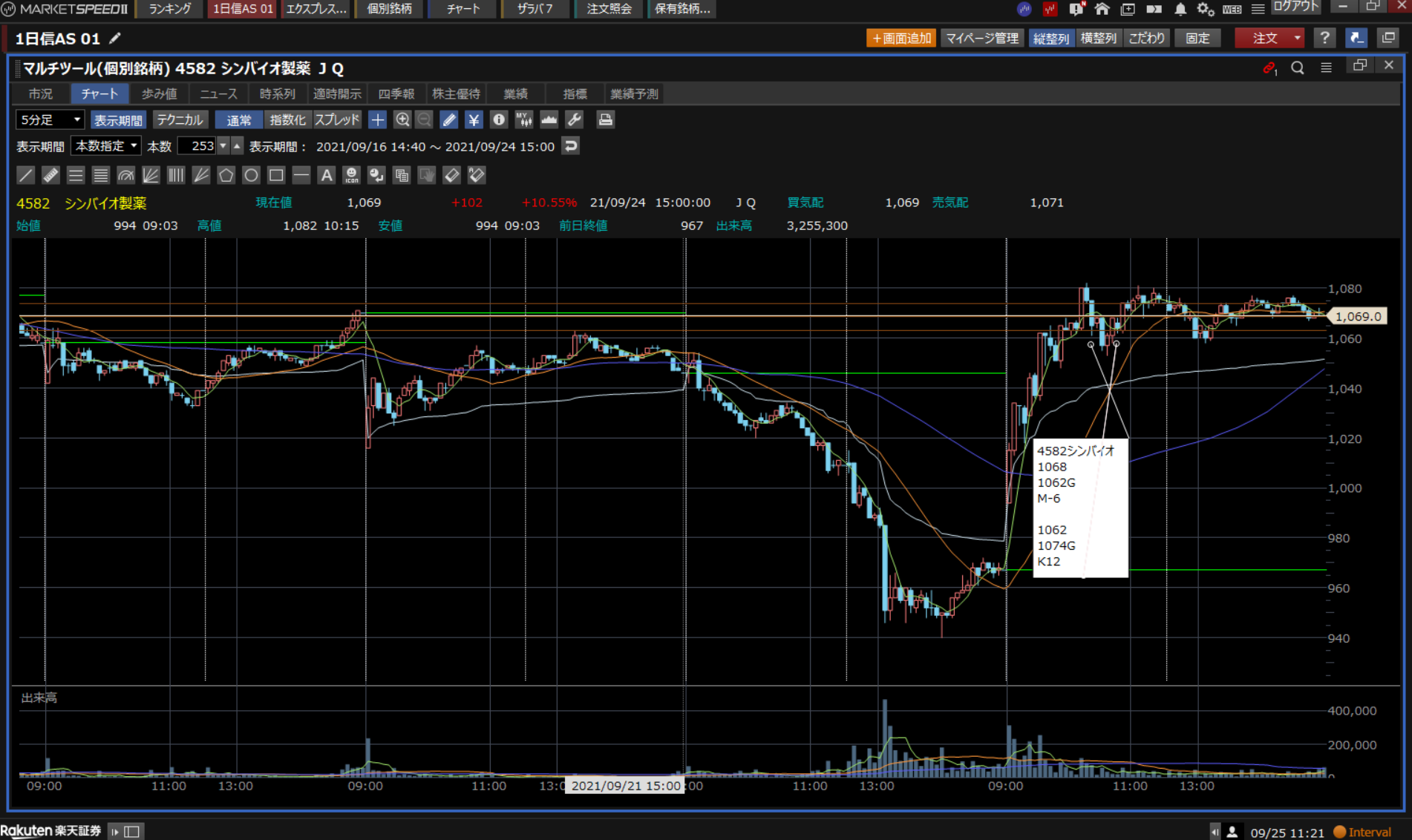2021/09/25 - 株の素人2021さんの株式ブログ。タイトル:「VT:4582 シンバイオ K6 信用前日下落反発」 本文:4582シンバイオ10681062GM-610621074GK12