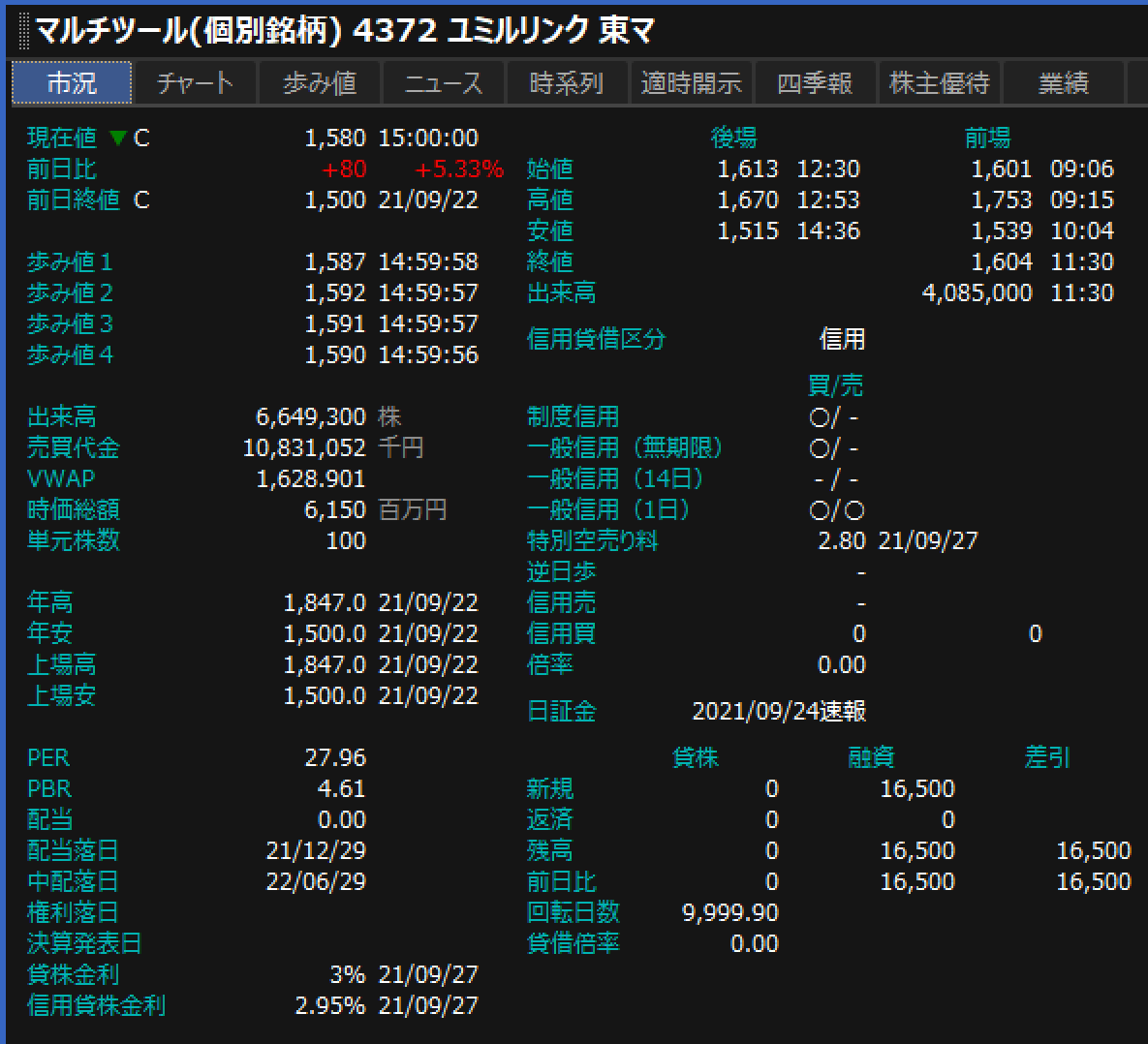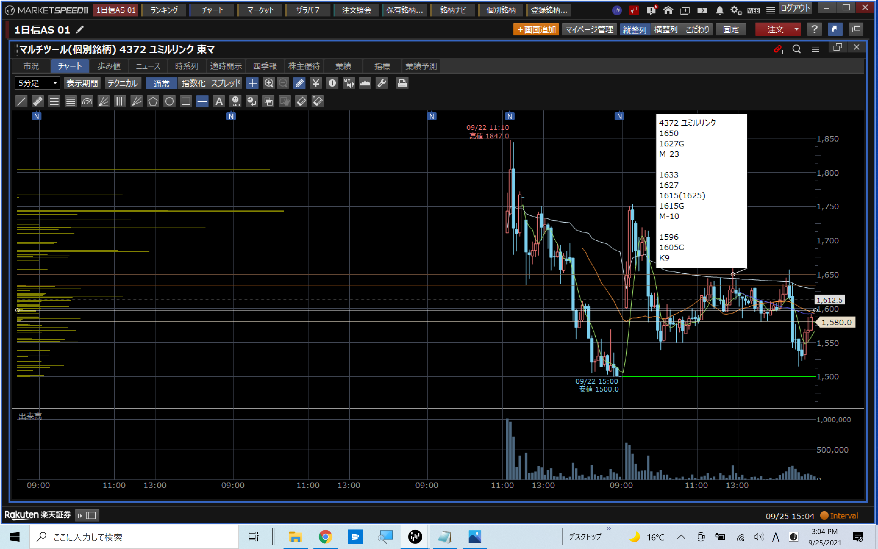2021/09/25 - 株の素人2021さんの株式ブログ。タイトル:「VT:4372 ユミルリンク M-24 IPO前日上昇」 本文:4372 ユミルリンク16501627GM-23163316271615(1625)1615GM-1015961605GK9