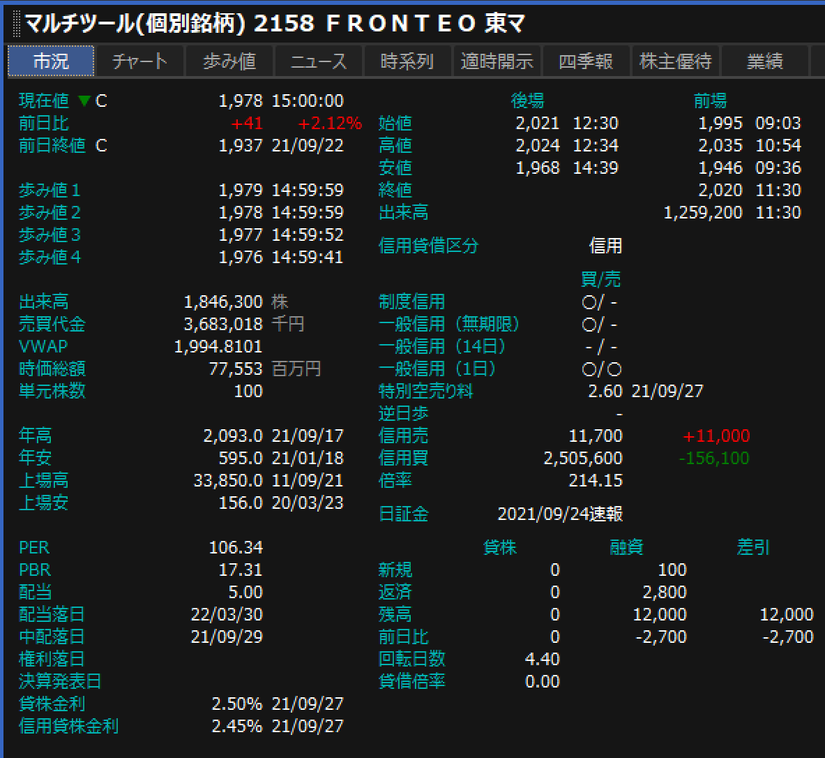 2021/09/25 - 株の素人2021さんの株式ブログ。タイトル:「VT:2158 FRONTEO M-2 信用前日下落」 本文:2158 FRONTEO20202018GM-2