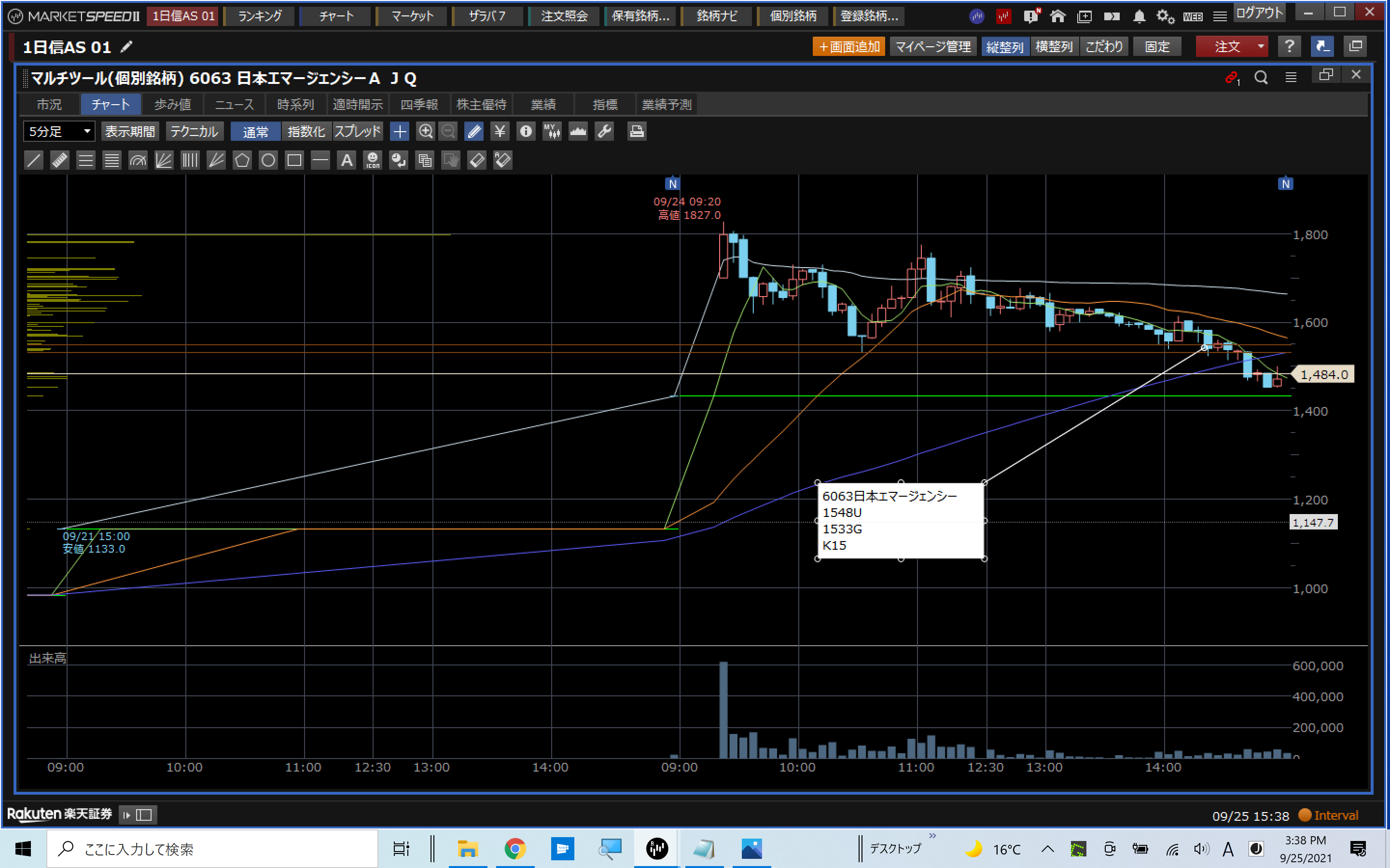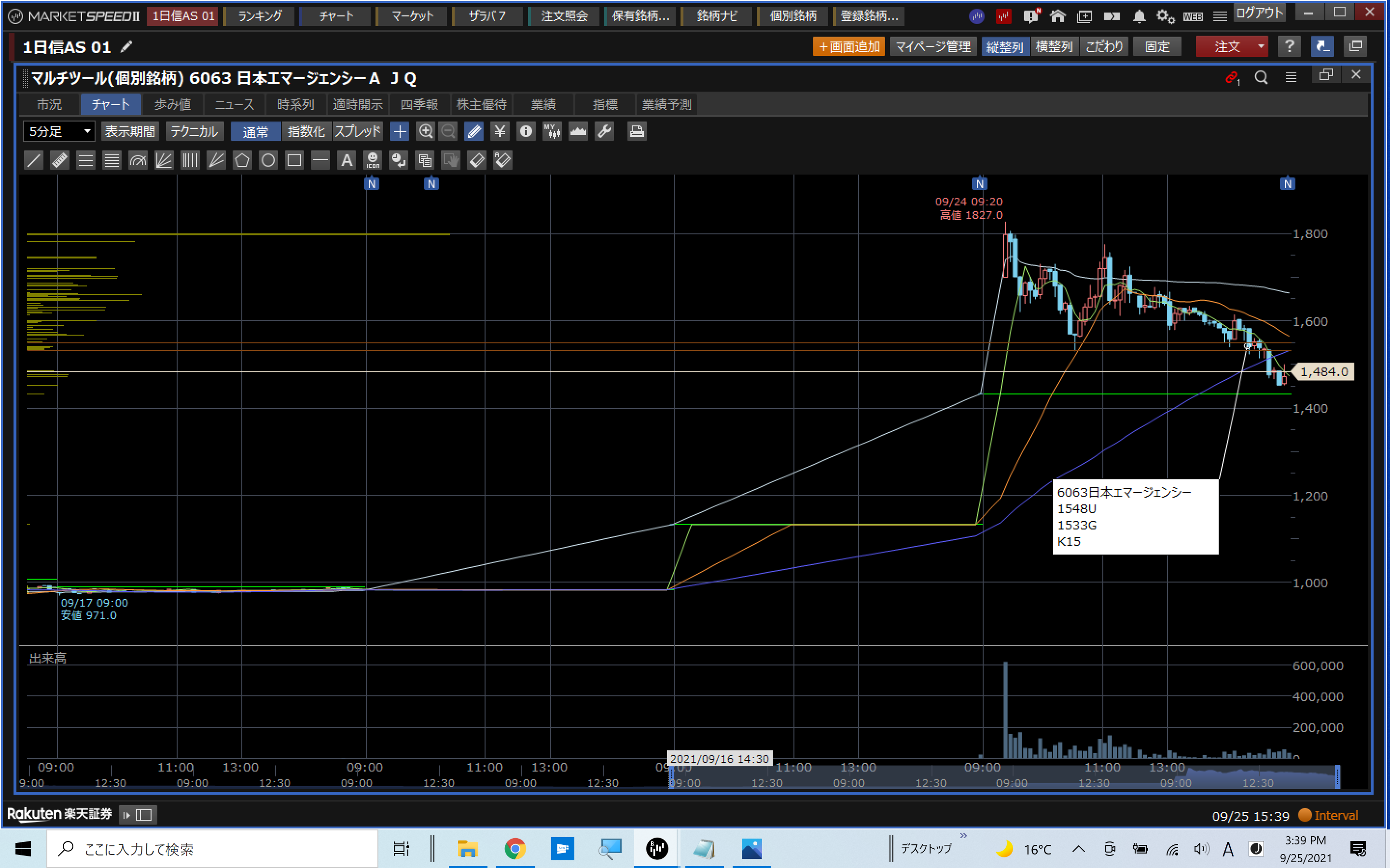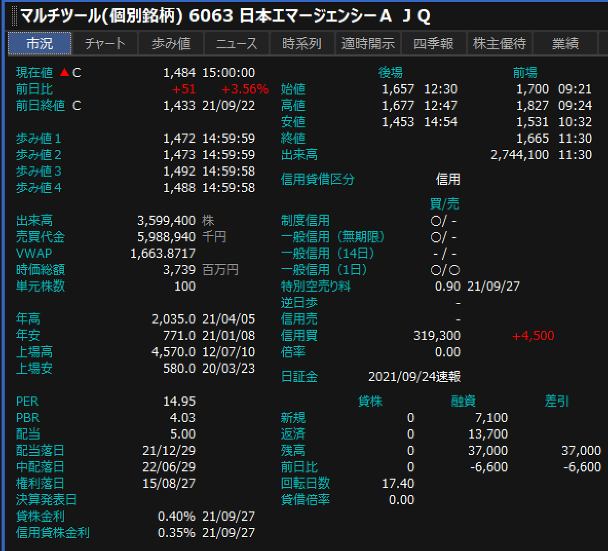 2021/09/25 - 株の素人2021さんの株式ブログ。タイトル:「VT:6063 日本エマー K15 U 信用前日STOP高」 本文:6063日本エマージェンシー1548U1533GK15