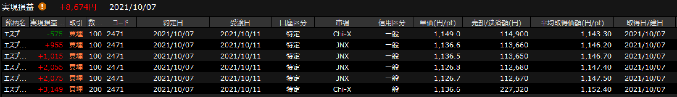 2021/10/08 - 株の素人2021さんの株式ブログ。タイトル:「RT: 2471 エスプリ K8674」 本文:1.143.30 U1.149.0GM-61.146.20 U1.146.70 1.147.40 1.147.50 1.136.50 GK 6,1301.152.40 U1.136.60 GK