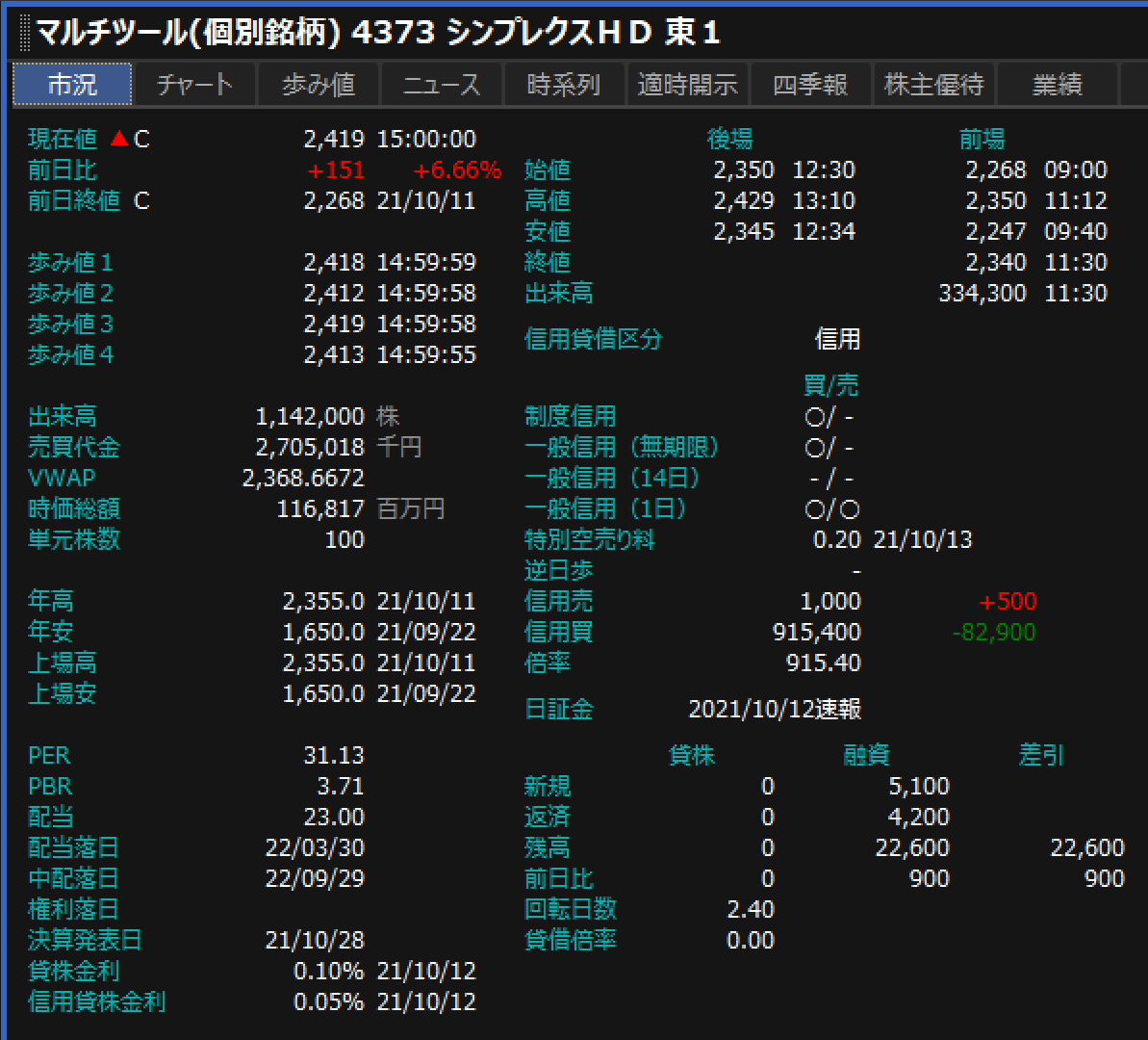 2021/10/13 - 株の素人2021さんの株式ブログ。タイトル:「RT: 4373 シンプレンクスHD」 本文:2.257.90 2.258.00 2.256.2G2.259.60 2.259.60 2.265.2G2.262.60 2.262.602.256.2G2.264.60 2.264.90