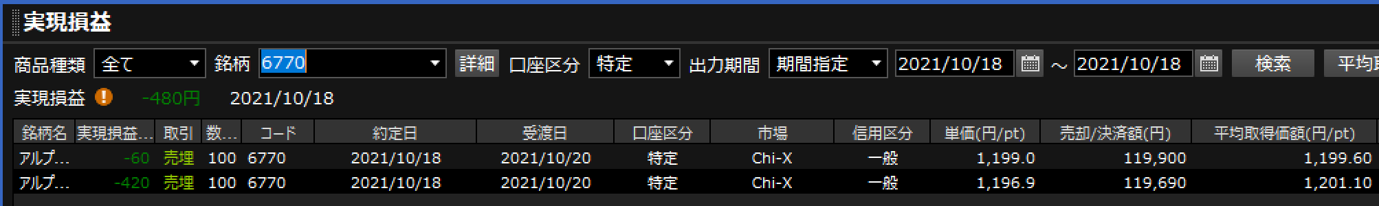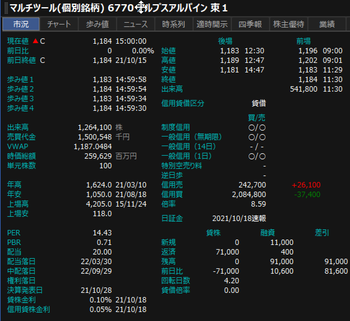2021/10/18 - 株の素人2021さんの株式ブログ。タイトル:「RT: 6770 アルプスパイン M-480円」 本文:RT