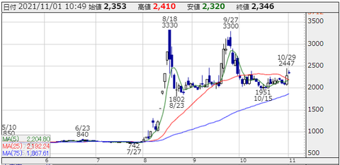 となりましたが、その後は一旦相場が終わった動きとなり、2000円台まで下落しましたが、完全に下げ止まって切り返しを見せています。