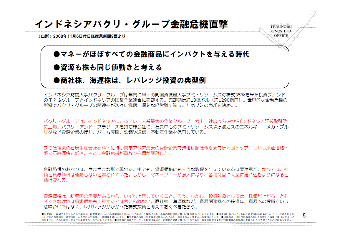 資源価格は、新興国の需要があるから、いずれ上昇していくことだろう。