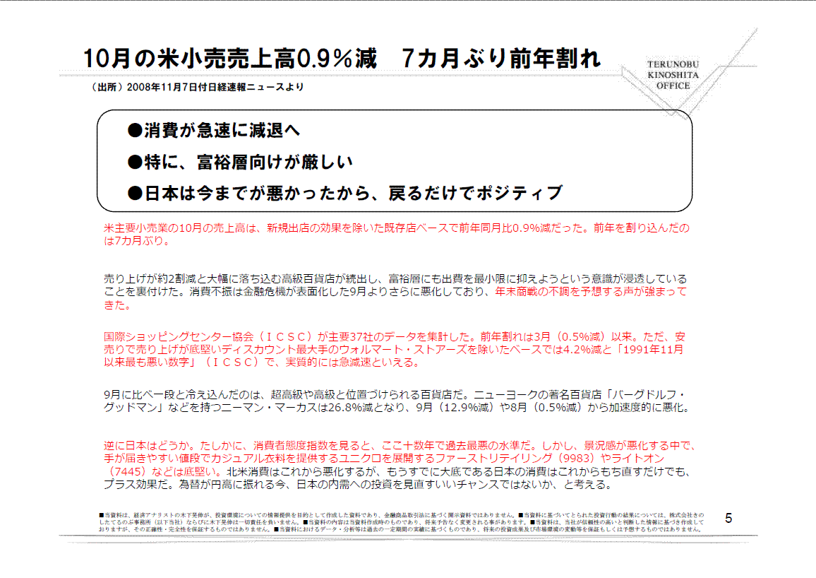 北米消費はこれから悪化するが、もうすでに大底である日本の消費は