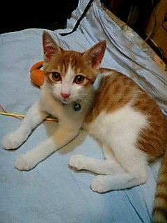 2007/08/30 - monoralさんの株式ブログ。タイトル:「新しいにゃ~が来ました♪」 本文:日曜日からうちに4匹目のにゃあが来ました。 まだ生まれて2か月くらいの♂猫です。 彼氏の友達が自宅前に小さいぬいぐるみが 落ちていると思ってよく見たらまだ目も開かない 子猫だったそうです。