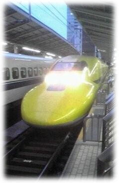 な、なんと、ドクターイエロー(黄色いボディーの新幹線)に出会えました