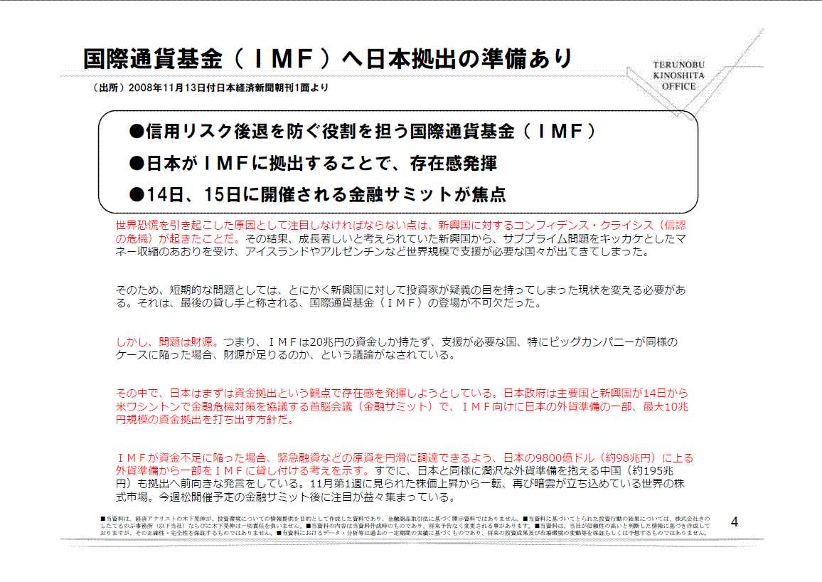 1.国際通貨基金(IMF)へ日本拠出の準備あり