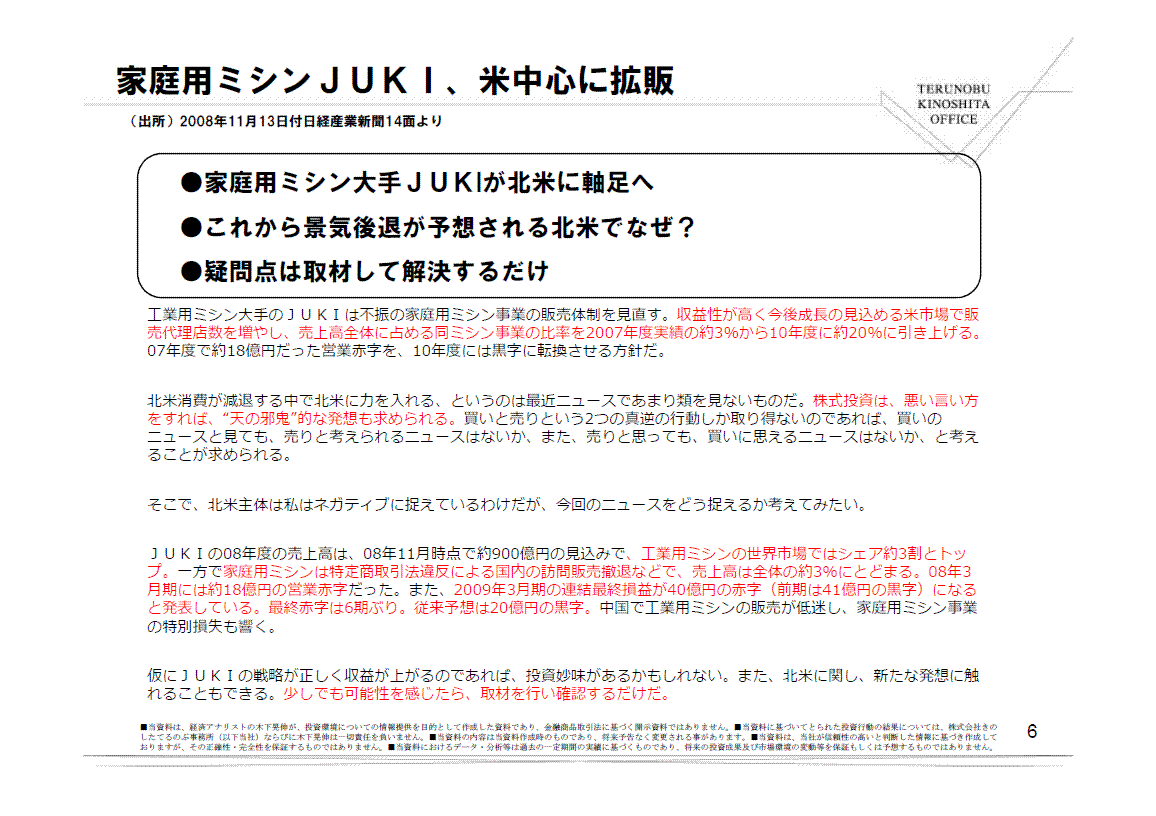 ●家庭用ミシン大手JUKIが北米に軸足へ