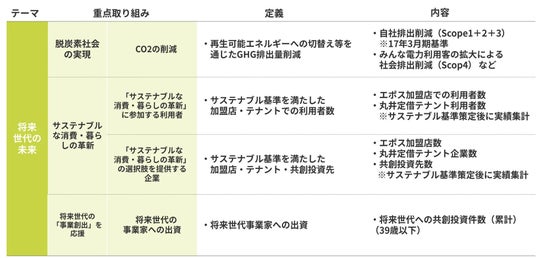 また、当社は、2030年のあるべき姿である「インパクト」を提示しました。そして、3つのインパクト目標の一つに「将来世代の未来を共に創る」を掲げ、重点項目の一つとして『サステナブルな消費・暮らしの革新』を設定しております。