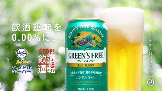 当社は「キリン グリーンズフリー」を通じて、ノンアルコール・ビールテイスト飲料を“お酒が飲めない時に代替として飲む”といった消極的な飲用から、“リフレッシュしたい時に、飲み物の選択肢の一つとして好んで飲む”といった積極的な飲用のカテゴリーに進化させることで、ノンアルコール・ビールテイスト飲料市場の活性化に貢献していきます。また、アルコールを扱う企業として、「ハンドルキーパー運動」支援をはじめとした、飲酒運転根絶などに向けた取り組みを行っていきます。