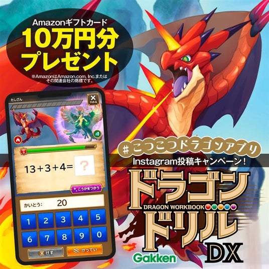 株式会社 学研ホールディングス(東京・品川/代表取締役社長:宮原博昭)のグループ会社、株式会社 Gakken(東京・品川/代表取締役社長:南條達也)は、2024年12月1日(日)より「ドラゴンドリルアプリ」10万ダウンロード突破を記念して、Instagramでの投稿キャンペーンを実施いたします。