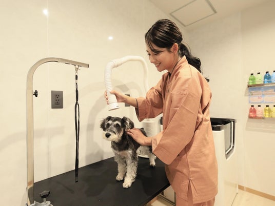 仔犬向け、短毛向け、長毛向けなど4種類のシャンプー&リンスが備わっており、タイプに合わせてご利用いただけます。ドライヤーはペットの皮膚と被毛をいたわる復元ドライヤーをご用意。