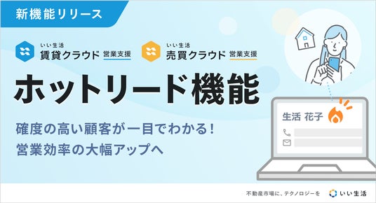 不動産会社の成約率向上を支援する「ホットリード機能」をリリース 「いい生活賃貸クラウド」「いい生活売買クラウド」の営業支援が対象