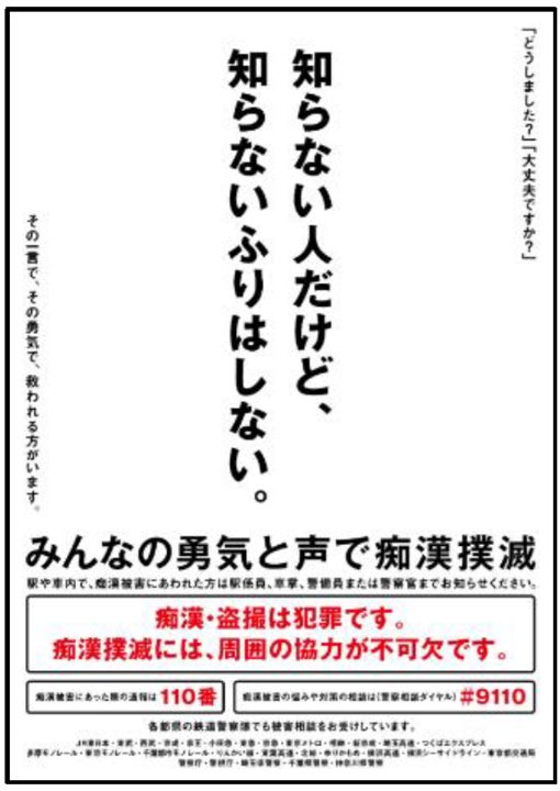 警視庁では、期間中、東京都、鉄道事業者等と協働で痴漢撲滅対策を実施します。