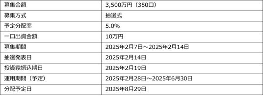 ◆ 「タスキ キャピタル重視型 第11号ファンド#1」募集要項