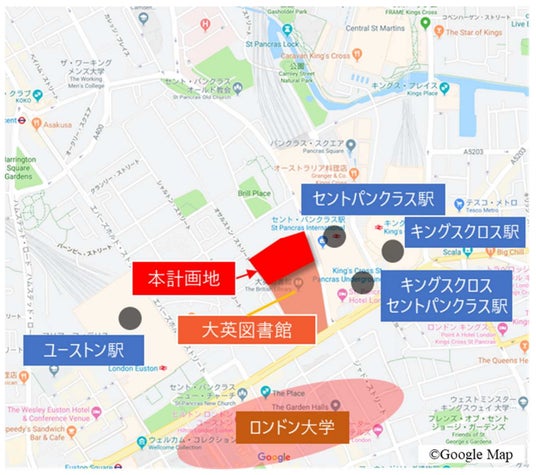 本事業の予定地は、ロンドン有数の立地に位置しており、ロンドンの主要鉄道駅でユーロスターの発着駅であるセントパンクラス駅、英国内の主要都市への発着駅であるキングスクロス駅、キングスクロスセントパンクラス駅、ユーストン駅といった総乗降客数が年間で2億人を超える4駅と近接します。また、現在計画中の新路線「Cross Rail 2」の新駅も新設される予定であり、将来的にエリア全体のさらなる発展が見込まれています。