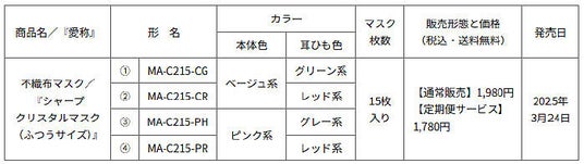 さらに、5周年を機にお客様がお気に入りの1色を選ぶことができるように、新たに『シャープクリスタルマスク』バイカラーモデルのラインアップを見直し、各カラー15枚入りタイプ(4種類)を追加しました。併せて、バイカラーモデルの定期便サービスも開始します。