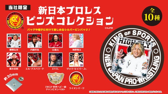株式会社イオンファンタジー(本社:千葉県千葉市、代表取締役社長:藤原徳也、以下、当社)は、新日本プロレスリング株式会社(本社:東京都中野区、代表取締役社長:棚橋弘至)の人気選手たちがデザインされた「新日本プロレス ピンズコレクション」を、アミューズメント施設「モーリーファンタジー」「PALO」、カプセルトイ専門店「TOYS SPOT PALO」「カプセル横丁」などに設置する当社オリジナル完全キャッシュレスカプセルトイマシン「かぷえぼ」限定カプセルトイとして3月28日(金)より順次展開いたします。