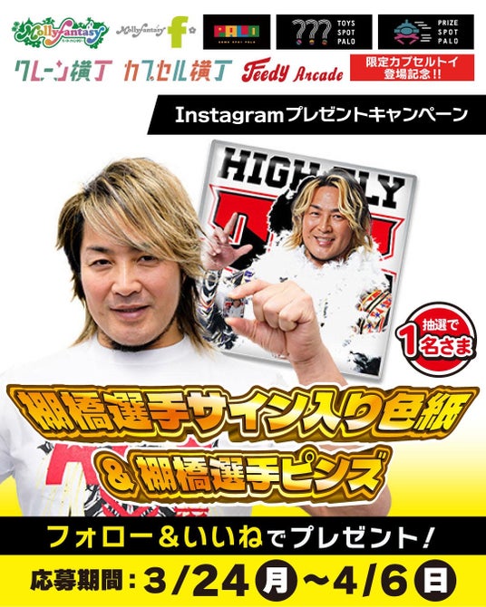 また、限定カプセルトイ用商品の展開を記念し、モーリーファンタジー公式X・Instagram で「棚橋選手 直筆サイン入り色紙」が当たるプレゼントキャンペーンを開催いたします。