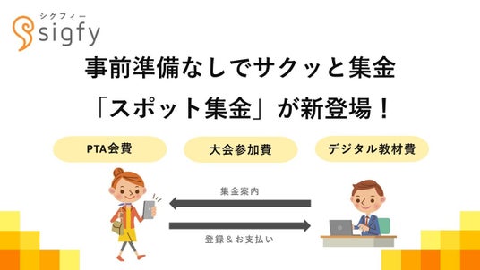 事前準備なしでサクッと集金! PTA・地域クラブ・学校教材店の負担を減らす「スポット集金機能」が『sigfy(シグフィー)』に新登場!