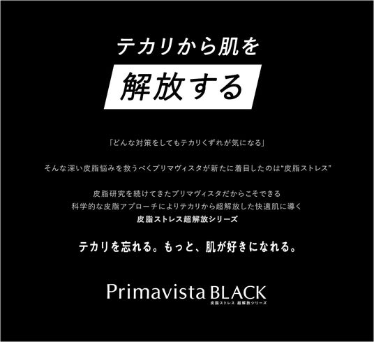 そんな「超オイリー肌用シリーズ」を2025年より「Primavista BLACK 皮脂ストレス超解放シリーズ」として訴求を強化。日中のテカリ・ベタつき悩みから肌を超解放し、サラサラで快適な日常を提供してまいります。