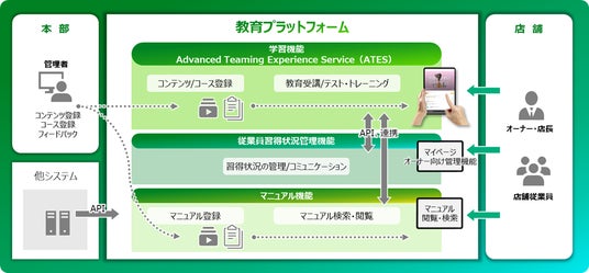 店舗従業員は、今後店舗に複数台の設置が予定されているモバイル端末やタブレット端末から本プラットフォームにアクセスし、自身の業務習得状況がリアルタイムに確認できるようになります。店舗従業員それぞれの習得状況に応じた学習コースの受講を通じて、店舗運営の方法などを学ぶことができます。オーナー・店長も同様に、店舗従業員の学習の進捗や習得状況をリアルタイムで確認できるため、店舗従業員の成長に向けたコミュニケーションがスムーズになり、より具体的なアドバイスができることで学習意欲を高めることができます。また、使いやすいユーザーインターフェースにより、マニュアルなどの必要な情報を簡単に検索して閲覧できることで、お客様対応の迅速化をサポートします。