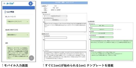 - 本機能により1on1の前に上司、部下間で議題を共有でき、より有意義な1on1を実現