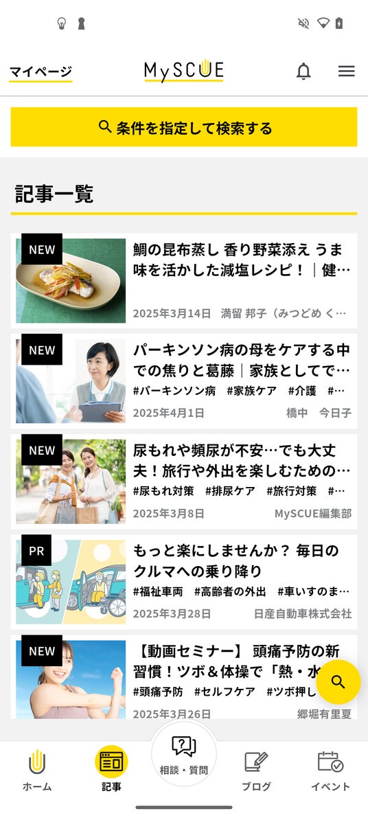 「MySCUE」はこれまで、シニアケアに携わる「ケアラー」に向けた情報サイトを展開していましたが、より“リアルタイムに”“親しみをもって”情報と接することができるアプリをこのたび実装します。