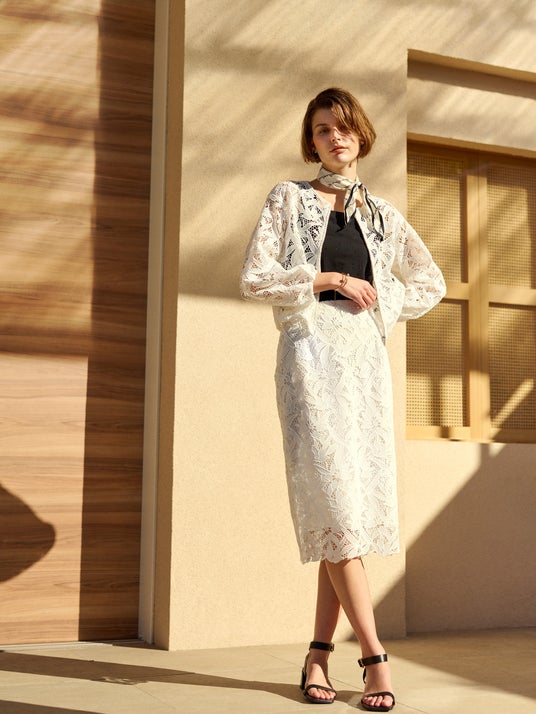 凹凸感のある上品なレースのセットアップなどもご提案いたします。