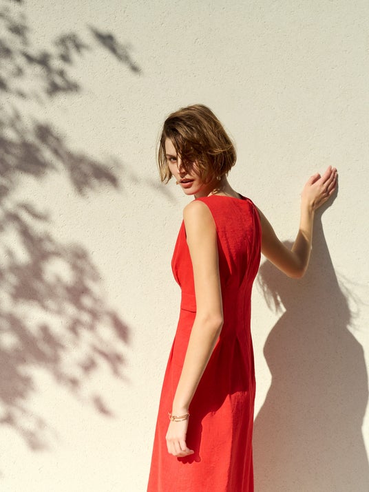 春夏の第三弾となるヴィジュアルLOOKでは、麻混素材を使用したウエストタックデザインのワンピース、大胆なオリジナル柄のブラウスとスカート、清涼感のあるジャージ素材にプリーツをかけたノースリーブワンピースなどが登場します。