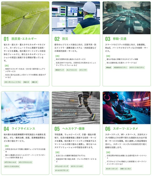 柏の葉スマートシティを進化・深化させる共創6テーマで事業化を目指す 脱炭素・エネルギー、防災、移動・交通、ライフサイエンス、ヘルスケア、スポーツ・エンタメ