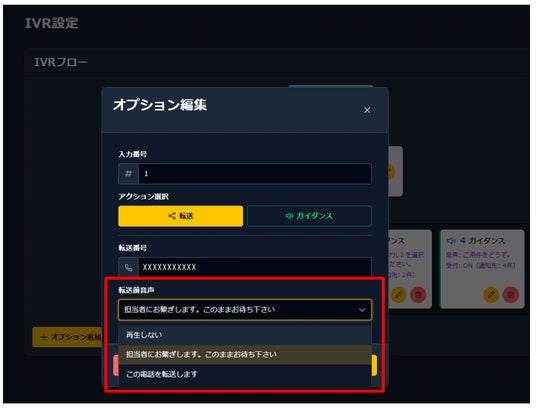 2.IVRの転送前音声ガイダンスを搭載