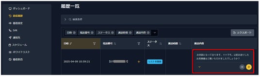 1.用件を文字起こししたテキストを着信履歴の一覧画面にも表示