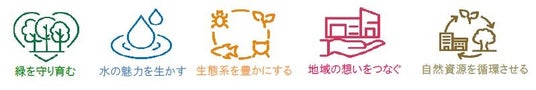 本宣言の策定にあたり、豊かな環境の実現に向けて重点的に取り組む5つの課題を設定いたしました。個別のプロジェクトにおいても各課題に取り組んでまいります。